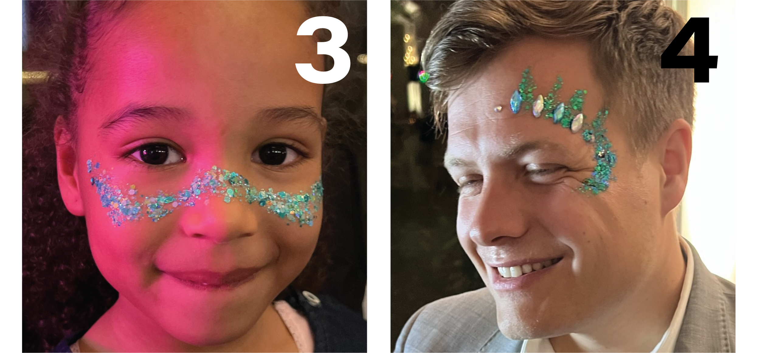 The designs are intended as examples. Artists will make adjustments to account for the client’s facial features and requests.